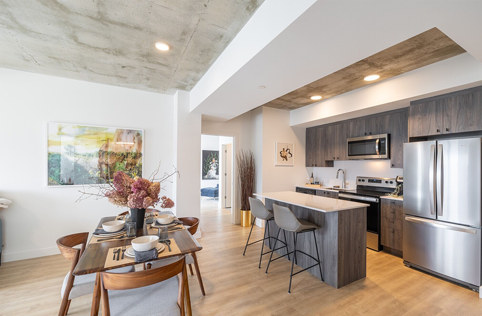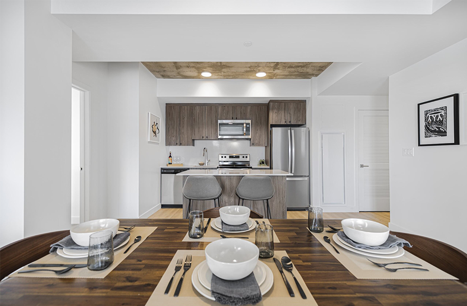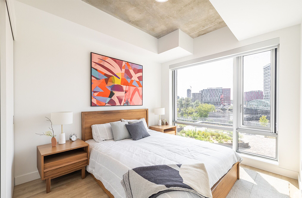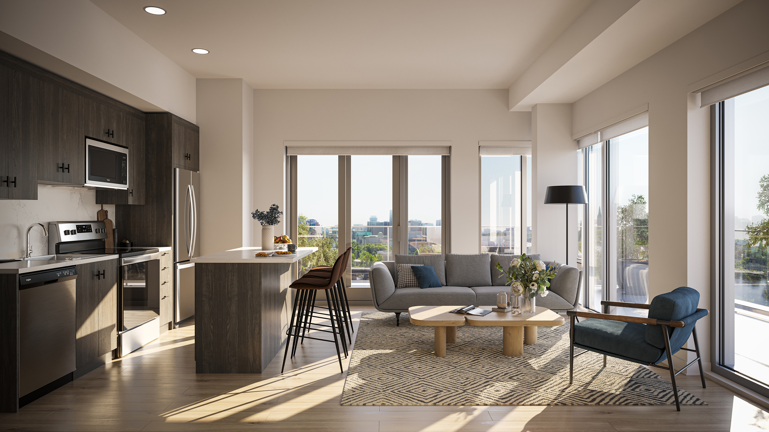 Aalto II’s light-filled suites feature 4-piece stainless steel Energy Star appliances, laminate flooring throughout, quartz countertops, window coverings in the living room and bedroom, in-suite laundry, and much more. The majority of Aalto II’s suites offer private balconies with ground floor units featuring oversized private terraces overlooking the Ottawa River and Tesasini Park. Enjoy unparalleled views of the nation’s capital from your home.