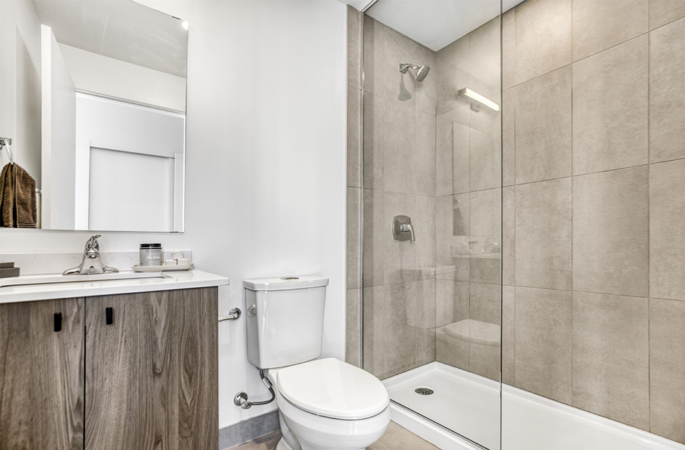 Aalto suites Il embraces the principles of Accessible Design. Select units feature barrier-free elements such as adjustable counter heights, roll under cabinets, colour contrasts for vision impairment, fold-down benches, and roll-in showers.